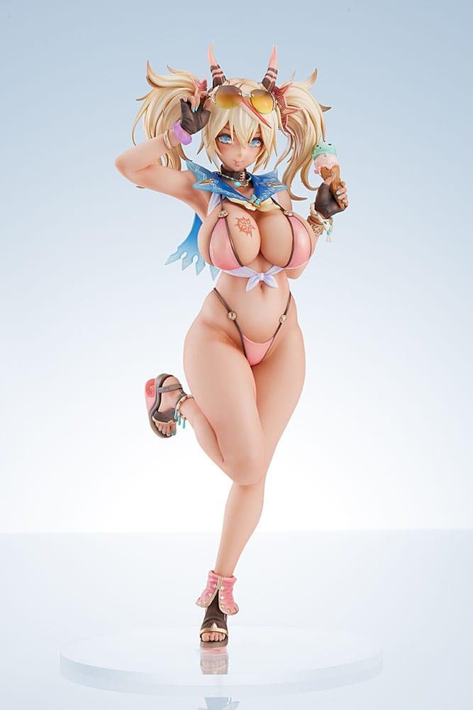 Fabricada en PVC de alta calidad, la figura cuenta con un tamaño aproximado de 27 cm, ofreciendo una presencia destacada y un nivel de detalle excelente. Gracias a su escala 1/7, cada elemento del diseño se aprecia con claridad, desde la expresión del personaje hasta los detalles del vestuario veraniego, cuidadosamente esculpido para transmitir frescura y atractivo visual.