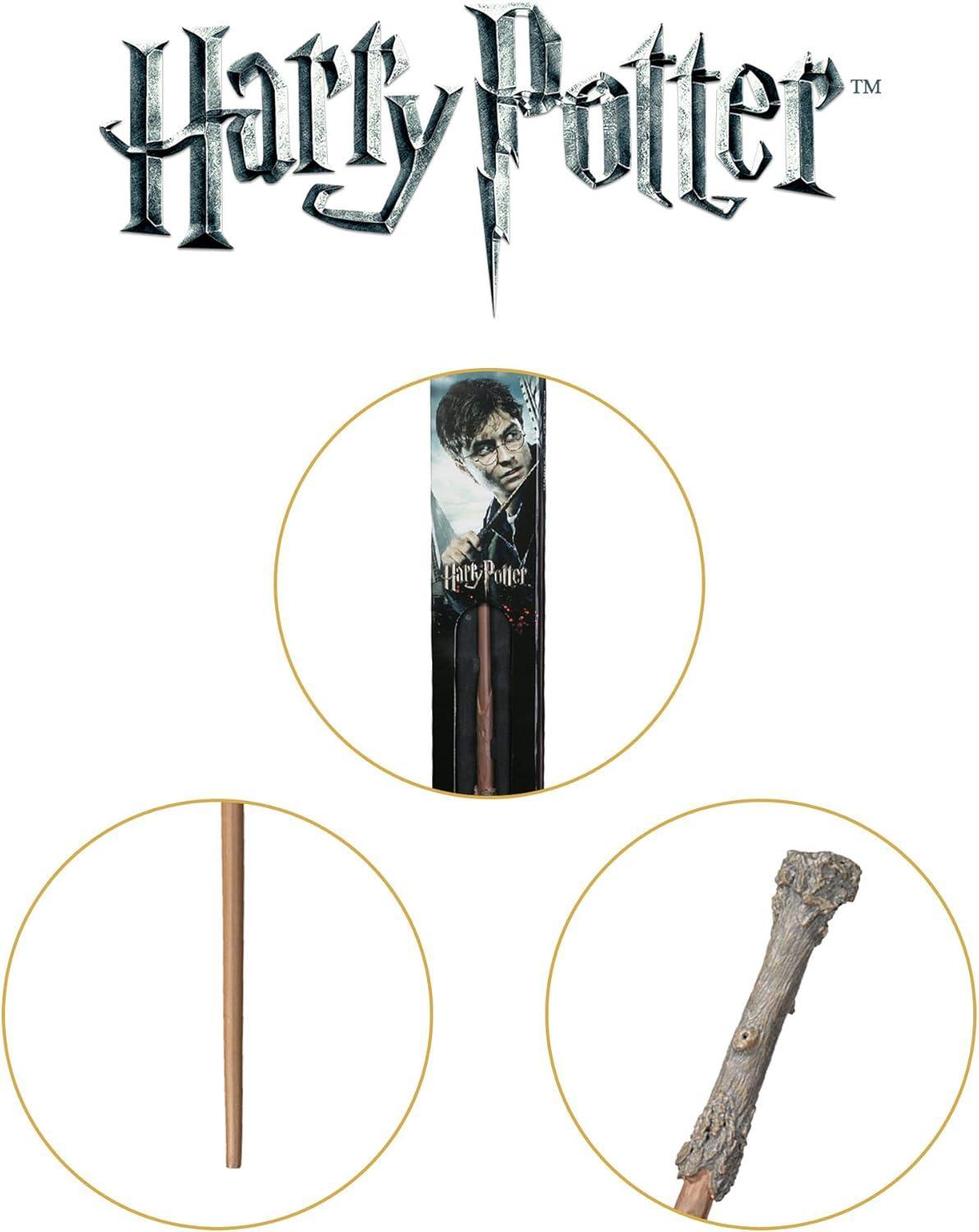 Fabricada con materiales de alta calidad y acabados detallados, esta varita reproduce el aspecto elegante y ligeramente orgánico que caracteriza la varita del joven mago. Su diseño sobrio y estilizado refleja la evolución del personaje a lo largo de la saga, desde sus primeros pasos en Hogwarts hasta su papel clave en la lucha contra Lord Voldemort. La réplica se presenta como una pieza de exposición ideal, pensada tanto para vitrinas como para acompañar disfraces de alta calidad.