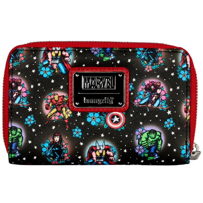 Rinde homenaje a los héroes más poderosos de la Tierra con esta vibrante cartera Vengadores Tattoo de Loungefly, una pieza que combina el estilo clásico del tatuaje con el universo Marvel. Su diseño presenta ilustraciones llenas de color y personalidad, con los emblemas y rostros de los Avengers reinterpretados en un estilo artístico único que hará las delicias de los fans y coleccionistas.