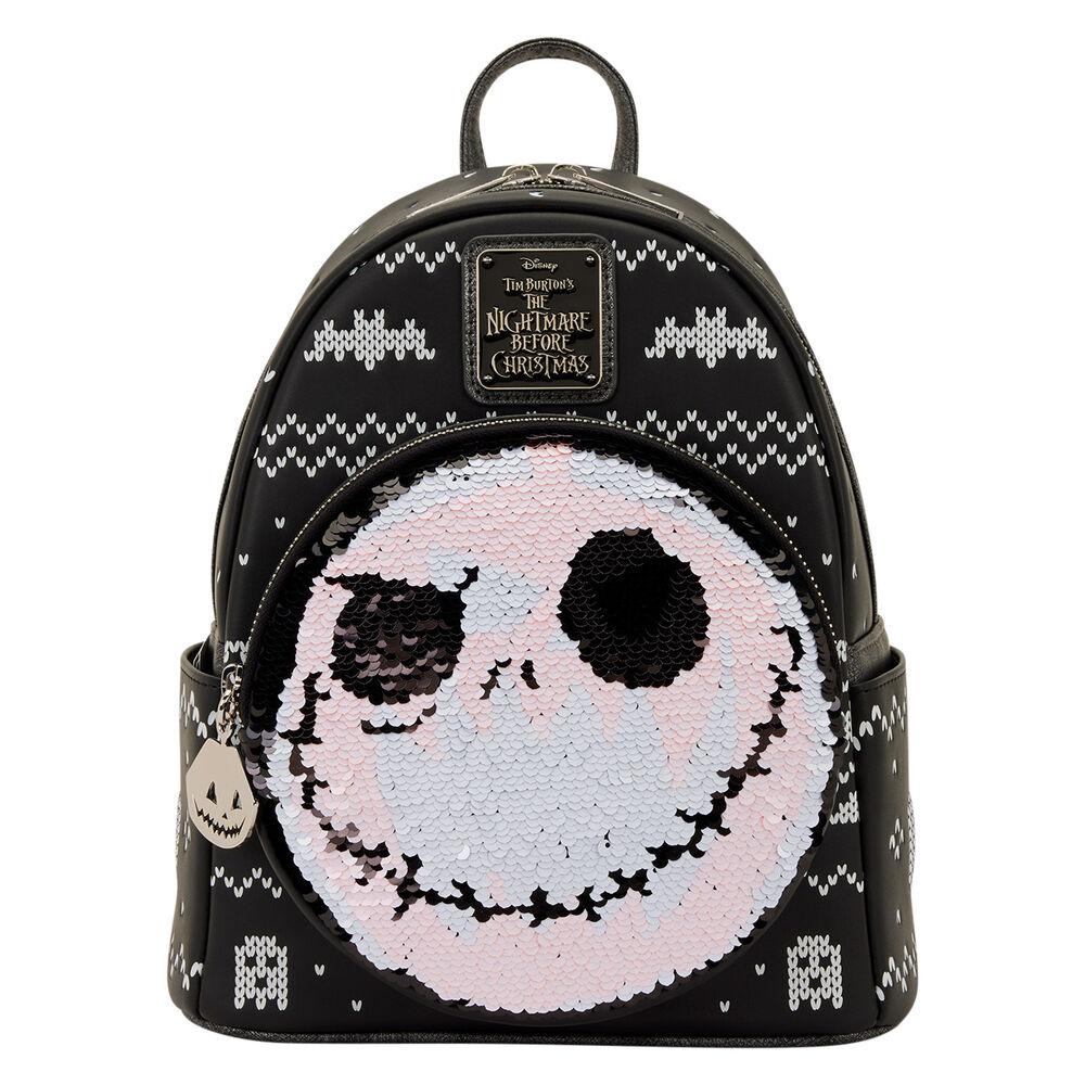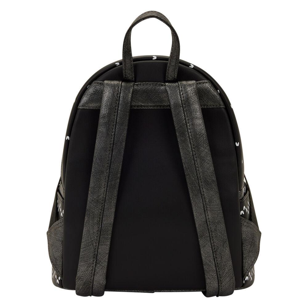 El interior cuenta con un forro a juego, y la pieza mantiene la calidad característica de Loungefly, combinando funcionalidad con estilo coleccionista. Es una mochila ideal para completar tu look temático, usar a diario o añadir a tu colección de The Nightmare Before Christmas.