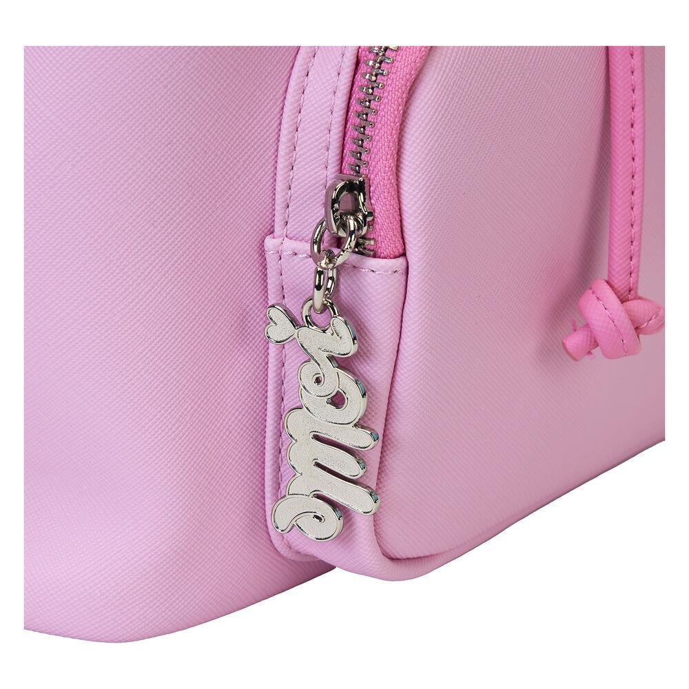 En la solapa superior encontrarás un encantador charm esmaltado con la silueta de Miss Piggy, perfecto para quienes desean expresar su fandom con estilo. En el reverso aparece impresa su firma de diva, aportando ese toque distintivo que la caracteriza. Los tirantes ajustables y el asa superior refuerzan la practicidad, ideal para el uso diario o para destacar en eventos y convenciones.