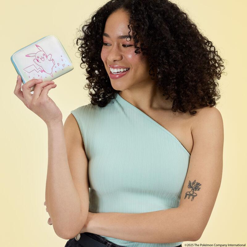 Lleva tu pasión por Pokémon a todas partes con este adorable monedero de Pikachu, que combina estilo y funcionalidad en un solo accesorio. Fabricado en cuero vegano iridiscente (poliuretano), el monedero presenta a Pikachu bordado en el centro, rodeado de símbolos grabados en relieve de corazones, Poké Balls y dulces, que aportan un toque divertido y lleno de detalles. En su interior encontrarás cuatro ranuras para tarjetas y un espacio transparente para tu identificación, perfecto para organizar tus esenciales de manera práctica.