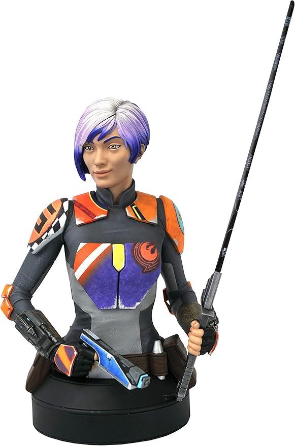 Presentamos un impresionante busto de Sabine Wren, inspirado en su icónica aparición en la serie animada Star Wars: Rebels. Esta pieza cuenta con licencia oficial, lo que asegura una fidelidad extrema al diseño original. Fabricada en resina de alta calidad, la figura refleja con gran detalle tanto su indumentaria como su espíritu rebelde: desde su casco mandaloriano hasta su armadura pintada con los característicos colores vibrantes y creativos que la definen.