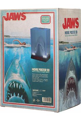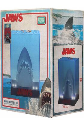Una de las principales novedades es su base iluminada con luz LED, que realza cada detalle de la figura y aporta un efecto visual espectacular, incluso en ambientes con poca luz. El diseño 3D reproduce la figura del tiburón en relieve, imitando la composición del póster de la película, lo que lo convierte en un objeto verdaderamente decorativo y llamativo.