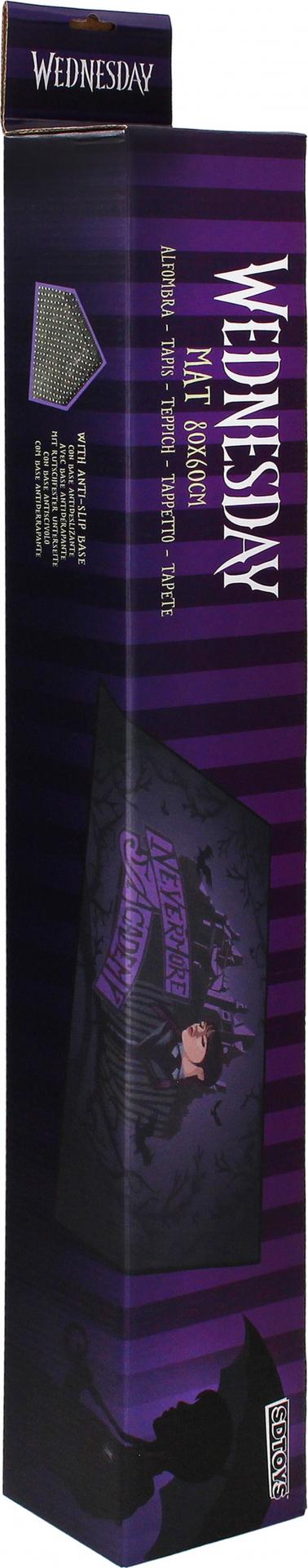 Si eres fan de Wednesday Addams y del universo oscuro e irresistible de la serie, esta alfombra Nevermore Academy será tu nuevo tesoro imprescindible. Diseñada por SD Toys, esta pieza combina estética gótica, detalles cuidados y ese estilo inconfundible que solo la Academia Nevermore puede transmitir. Fabricada en poliéster resistente, ofrece un tacto suave y un acabado duradero, perfecta para colocar en tu habitación, estudio o zona friki. Con un tamaño de 80×60 cm, destaca por su llamativo emblema de la escuela y su diseño fiel al imaginario de Wednesday, ideal para transformar cualquier rincón en un espacio digno de un verdadero “Raven”. Si amas la serie y quieres mostrar tu espíritu dark con estilo, esta alfombra Wednesday es el complemento perfecto para tu colección y para darle un toque siniestro y elegante a tu hogar.