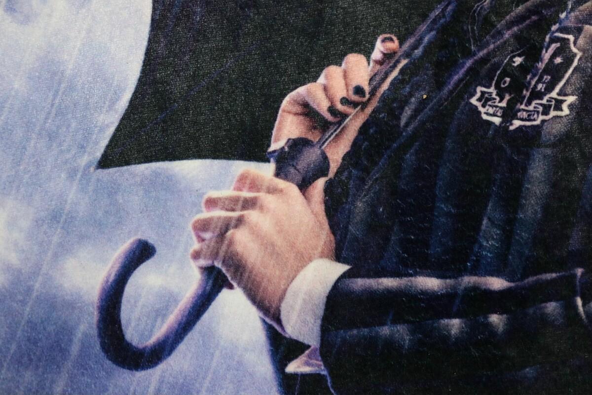 Academia Umbrella y el universo gótico de la serie, gracias a su estampado detallado y su diseño oscuro y elegante. Está hecha en