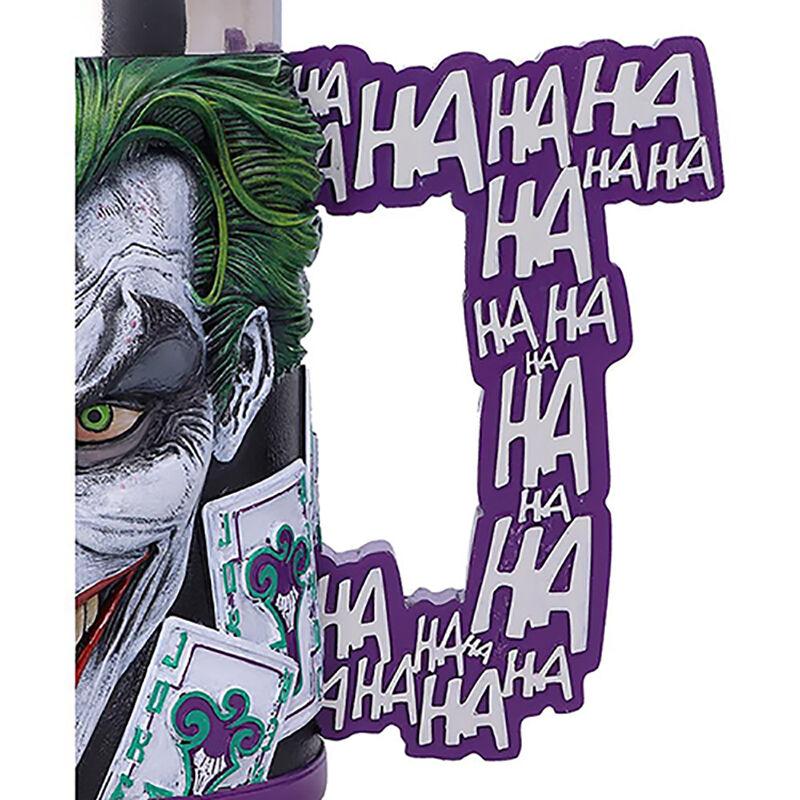 La Jarra de Cerveza The Joker es una pieza imprescindible para los fans del universo DC Comics y del coleccionismo inspirado en villanos icónicos. Con una altura aproximada de 15,5 cm, esta jarra combina diseño impactante y carácter decorativo, convirtiéndose en un objeto tan llamativo como funcional.