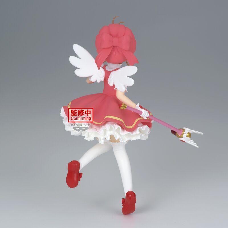 La figura fabricada por Banpresto, creador reconocido por su calidad y fidelidad en productos coleccionables captura a Sakura en su versión de Clow Card, con su traje clásico rosa, su báculo mágico listo para la acción y una pose dinámica que evoca tanto su energía como su encanto. Cada detalle del diseño está cuidadosamente esculpido, desde los pliegues del vestido hasta la expresión vivaz del personaje, lo que la convierte en una pieza ideal para coleccionistas y fans del universo CLAMP.