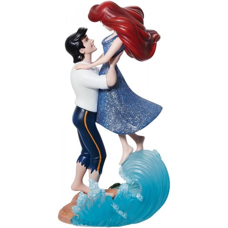 Esta figura presenta a Ariel y el Príncipe Eric en una escena dinámica, posados sobre una ola cristalina que da vida al momento más romántico de La Sirenita. Fabricada en resina de alta calidad y pintada a mano, cada detalle; desde las expresiones faciales hasta los pliegues del vestido y la textura del agua; está diseñado para capturar la esencia del clásico de Disney con un acabado impecable.