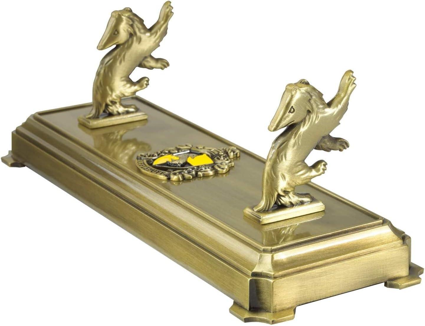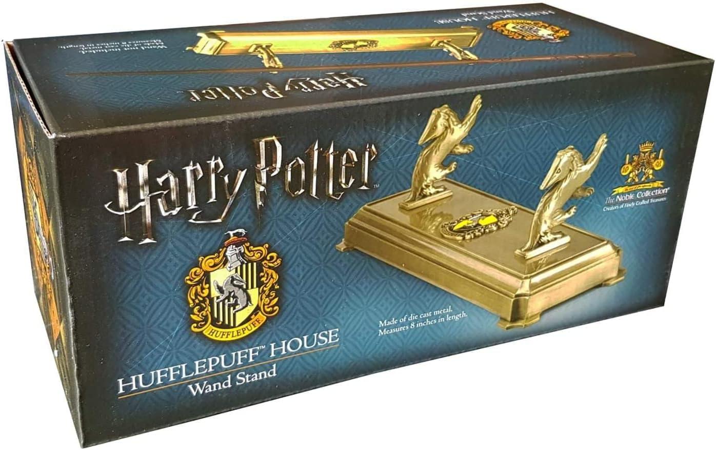 Su diseño incorpora el tejón, emblema de la casa, junto con detalles y acabados que evocan la estética clásica de Hogwarts. Este tipo de pieza no solo cumple una función práctica, sino que permite exponer varitas de colección de manera ordenada y visualmente atractiva, convirtiéndose en un complemento perfecto para vitrinas, estanterías o escritorios temáticos.