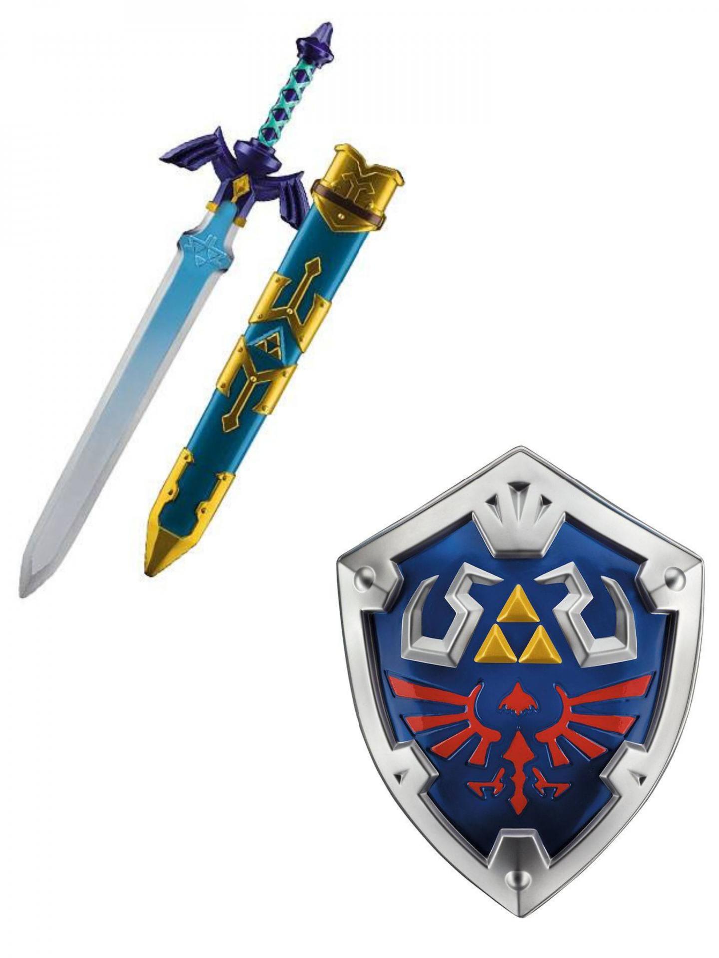 La Réplica de la Espada Maestra mide aproximadamente 66 cm, con colores y detalles que evocan la mística mística de Hyrule y la fuerza del héroe elegido por la Trifuerza. El Escudo Hylian, por su parte, tiene una altura de alrededor de 48 cm, con sus formas y símbolos icónicos que han acompañado a Link en incontables batallas contra la oscuridad, todo trabajado en plástico resistente y seguro para exposición o juego ligero.