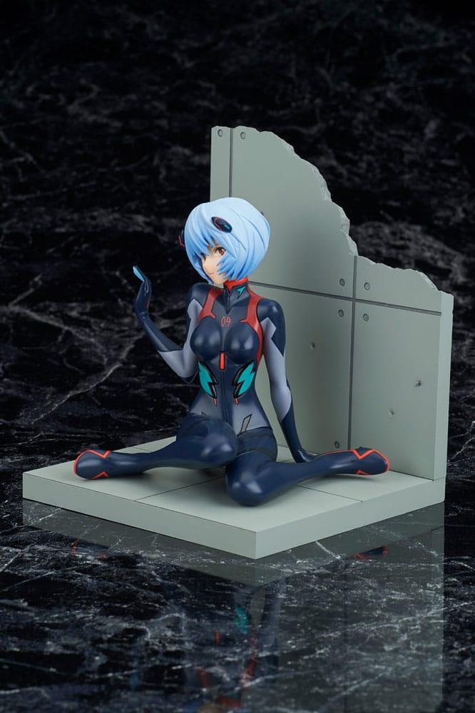 Esta versión representa a Rei Ayanami en su apariencia “Tentative Name” (nombre provisional), con su característico plugsuit blanco, tal como aparece en la etapa final de la historia. La escultura captura su expresión serena y enigmática, con un modelado delicado que transmite la esencia del personaje.