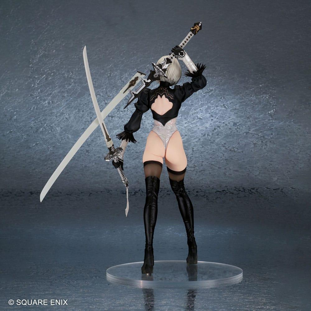 La estatua PVC 2B (YoRHa No. 2 Type B) de 28 cm está inspirada en el aclamado videojuego NieR:Automata, una de las obras más destacadas del género action RPG.