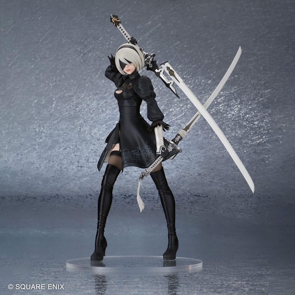 Con una altura aproximada de 28 cm, la pieza ofrece un alto nivel de detalle en el modelado del traje, los acabados del cabello y los efectos de movimiento. Fabricada en PVC de alta calidad, es ideal para coleccionistas que buscan una figura protagonista dentro de su colección de videojuegos o de NieR.