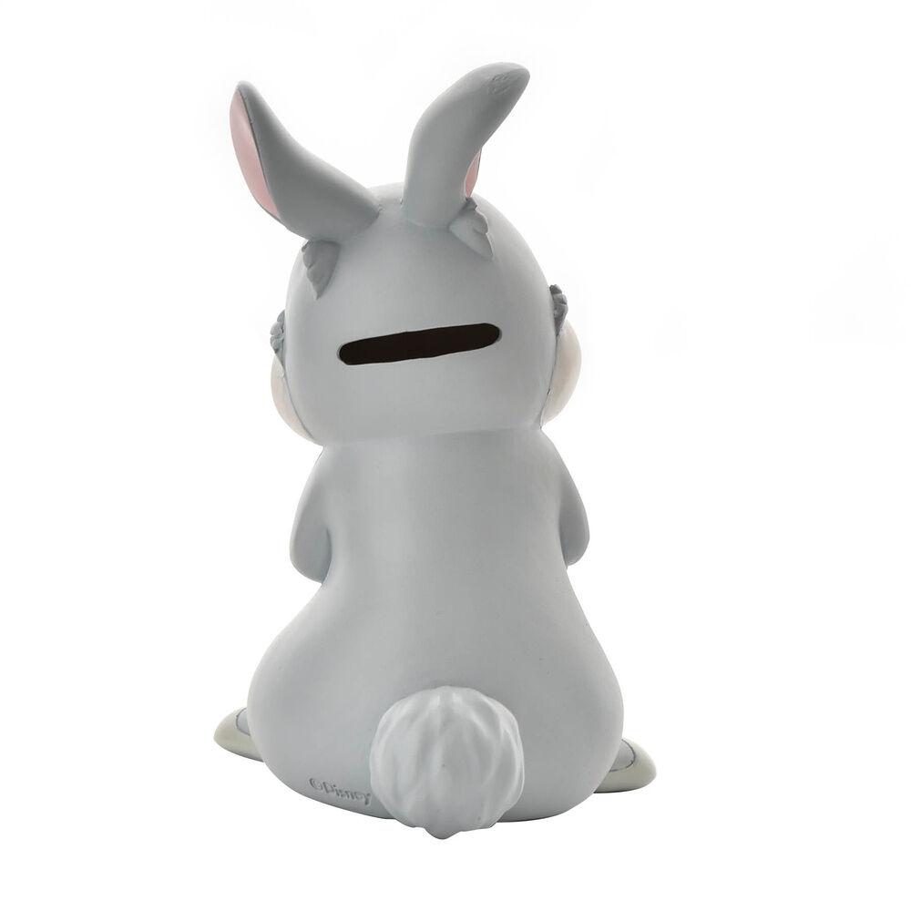 Además, el conjunto incorpora una hucha de Tambor (Thumper), fabricada también en resina resistente, que destaca por su colorido equilibrado y acabado mate, aportando un aspecto moderno y decorativo. La ranura para introducir monedas se encuentra discretamente situada en la parte posterior de la cabeza, mientras que en la base dispone de un tapón de goma extraíble, facilitando el acceso al contenido de forma cómoda y práctica. Esta hucha no solo cumple una función útil, sino que también se convierte en una pieza decorativa con gran personalidad.