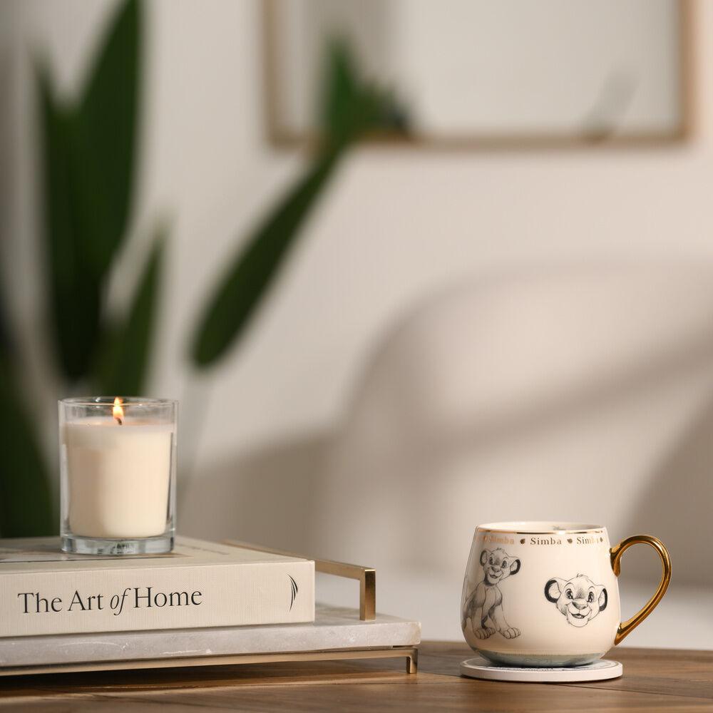El set se completa con una sofisticada taza de Simba, elaborada en porcelana china, que ofrece un acabado fino y agradable al tacto. Su diseño incluye ilustraciones esbozadas del personaje junto con detalles dorados elegantes, creando una pieza ideal tanto para disfrutar de bebidas como para exhibir en vitrinas o estanterías.