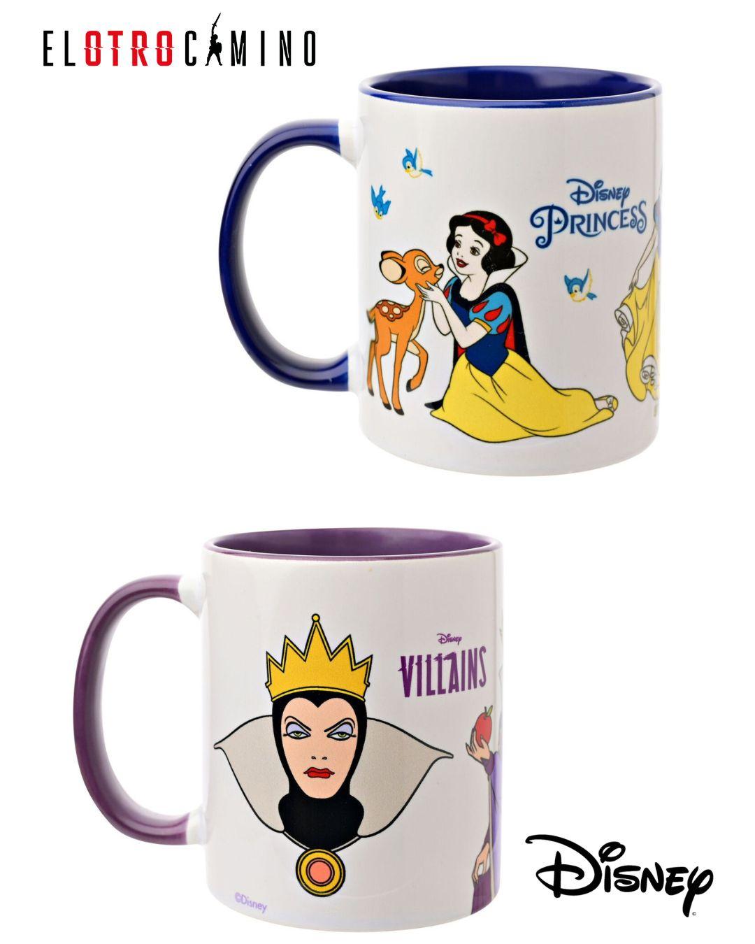 El set incluye una taza dedicada a Blancanieves, la primera princesa Disney y protagonista del histórico largometraje de 1937, y otra centrada en la imponente Reina Malvada, una de las villanas más icónicas de la historia del cine de animación. Ambas piezas destacan por sus ilustraciones cuidadosamente diseñadas, que reflejan la dualidad entre la inocencia y la oscuridad, convirtiendo este conjunto en un artículo especialmente atractivo para coleccionistas.