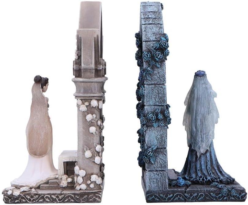 Inspirado en la aclamada película dirigida por Tim Burton y Mike Johnson, este artículo rinde homenaje a una obra que se ha convertido en un referente del cine stop motion. Curiosamente, La Novia Cadáver fue una de las pocas películas animadas nominadas al Óscar en su categoría durante su época, destacando por su innovador estilo visual y su emotiva narrativa. El personaje de Emily, con su estética melancólica y su historia trágica, se ha convertido en uno de los más queridos dentro del universo burtoniano, mientras que Victoria representa la elegancia y la vida, creando un contraste visual y simbólico fascinante que se refleja perfectamente en este sujetalibros.