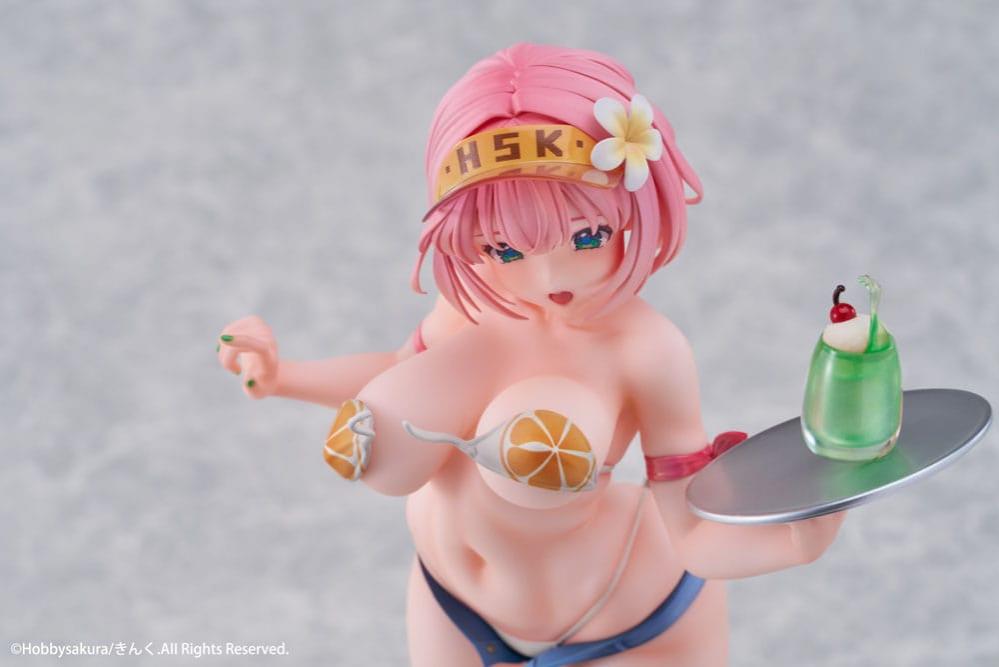 Fabricada en PVC de alta calidad, la figura presenta un tamaño aproximado de 25 cm, ideal para lucir en vitrinas sin renunciar a un excelente nivel de detalle. Cada elemento ha sido cuidadosamente esculpido para reflejar fielmente la ilustración original, desde la pose dinámica hasta los acabados del vestuario de estilo summer waiter, que aporta un aire desenfadado y atractivo, muy valorado dentro del mundo del coleccionismo de figuras anime y originales.