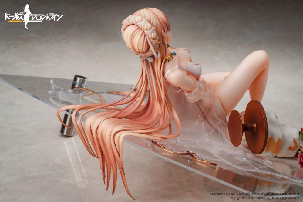 Fabricada en PVC de alta calidad, la figura tiene un tamaño aproximado de 14 cm, con una escala 1/7 que permite apreciar con precisión cada detalle del personaje, desde su expresión facial hasta los efectos del daño en su vestuario. La pose y composición enfatizan la acción y el atractivo visual, haciendo de esta versión una pieza imprescindible para los fans de Girls’ Frontline que buscan figuras más atrevidas y coleccionables.